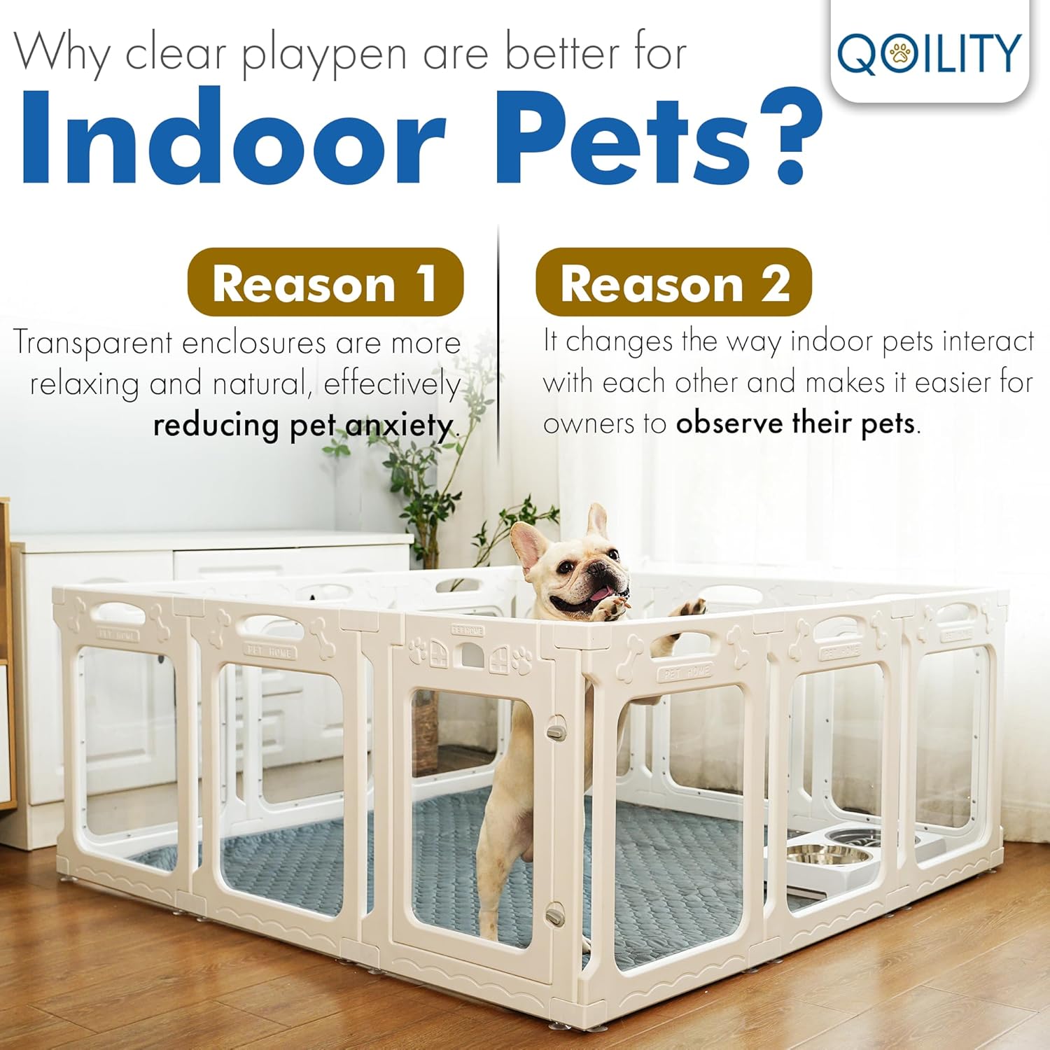 - Effectively Relieves Indoor Dog Anxiety: Clear dog pen is convenient for dogs to observe their surroundings and bring them closer to their masters, which improves their sense of security and maintains a healthy mental state.