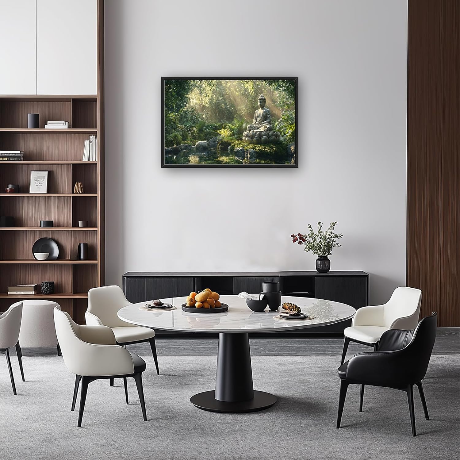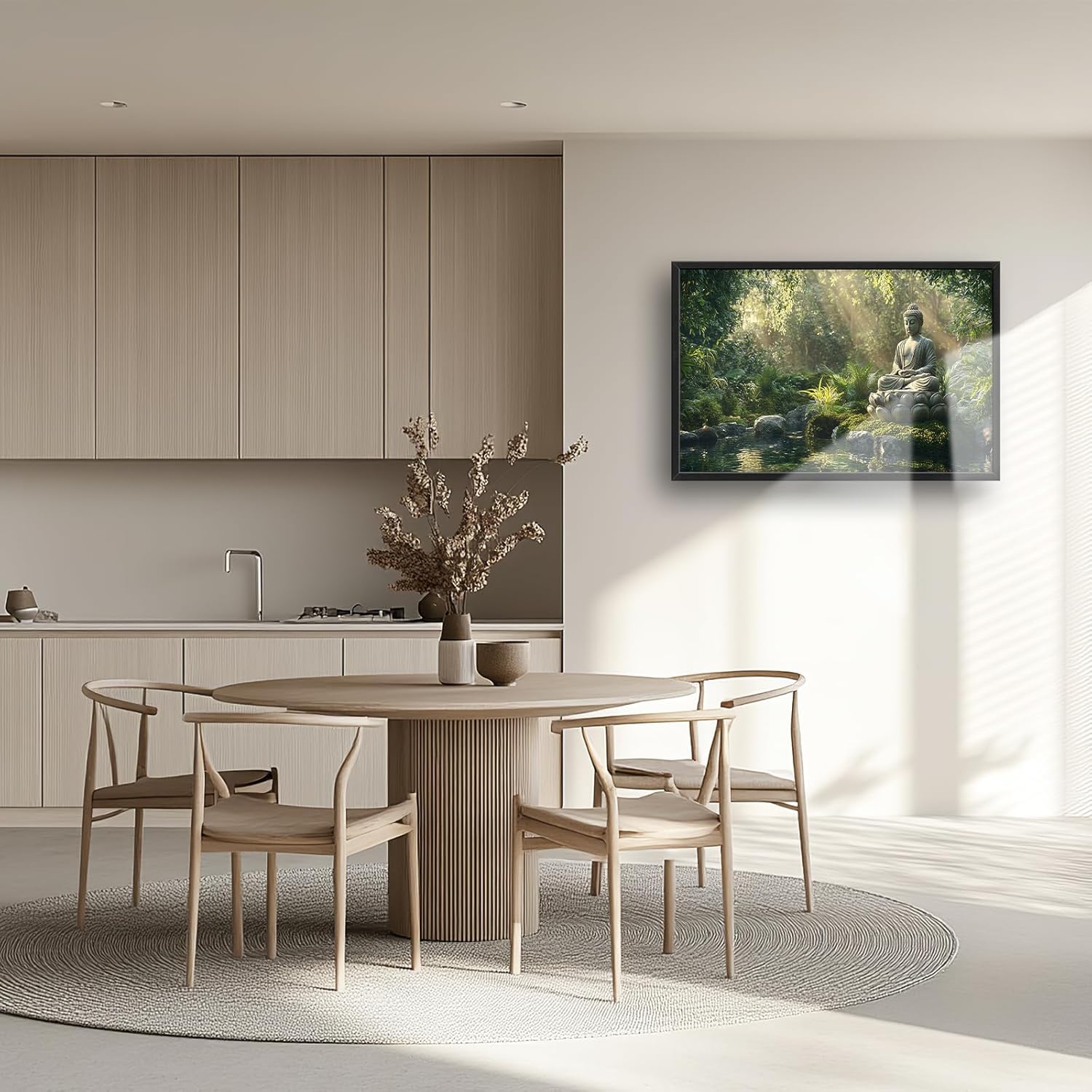 Large Buddha Forest Wall Art for Living Room, Framed Oversized Tree Lake Wall Decor, Nature Landscape Canvas Painting Modern Artwork Home Decoration for Dining Room Bedroom Office 36"x24"