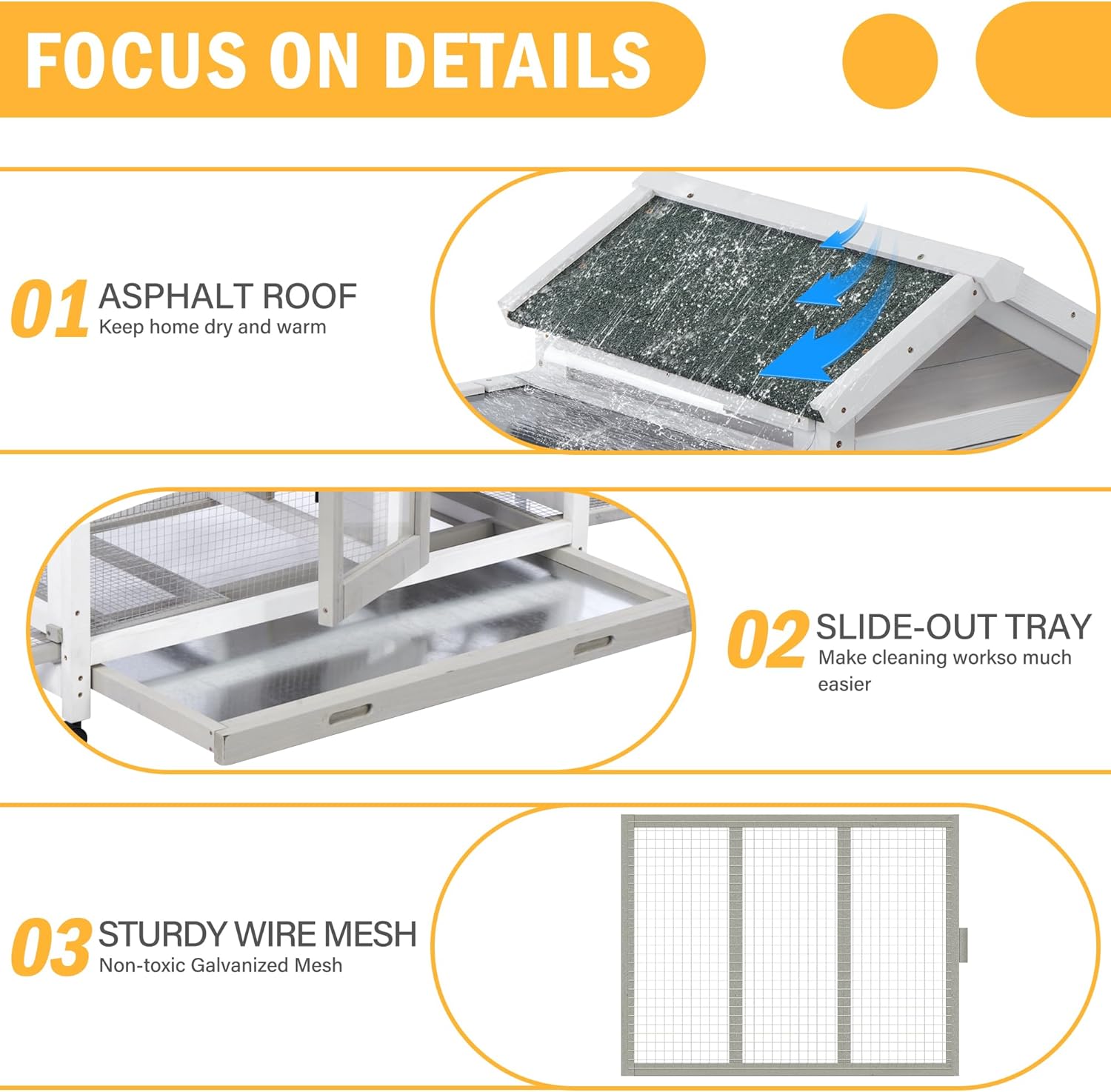 - Weatherproof Roof: Outdoor bunny hutch UV-proof panels and a waterproof asphalt roof,shields your small pets from wind,rain,and snow, suitable for both indoor and outdoor use.