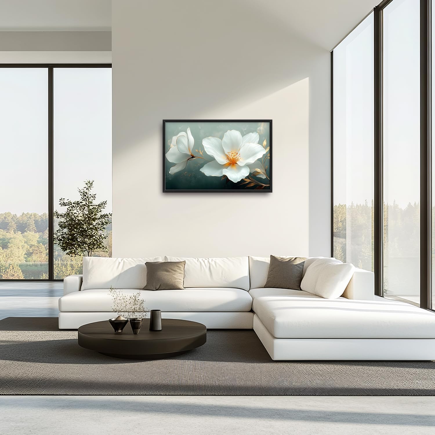 Large White Floral Wall Art for Living Room, Flower Canvas Oversized Wall Decor, Aesthetics Framed Pictures Painting Print Artwork for Bedroom Office 36L" x 24W"