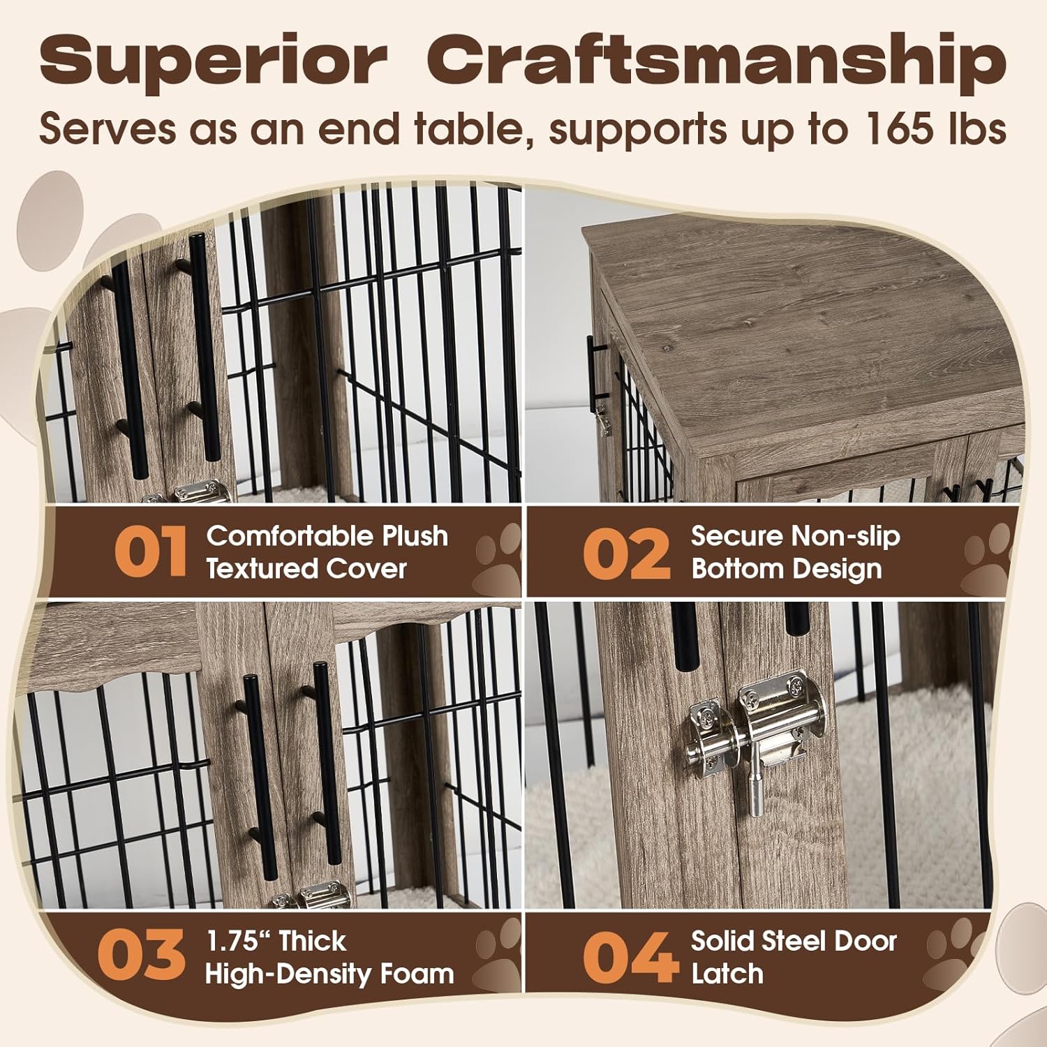 - Multi-Functional Dog Cage Furniture – Use as a decorative dog crate in your living room, entryway, or bedroom. The spacious top (150 lb capacity) holds plants, lamps, or photo frames, making it a versatile furniture-style dog crate.