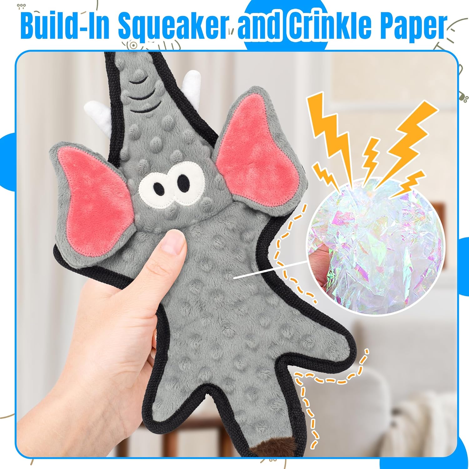 - Durable Tough dog toys: the interactive dog toys have bound-edge witch is made of nylon,ensures a more compact and firm sewing. It is sewn with a layer of mesh fabric inside, which can withstand the biting of dogs. The tensile test of 250N is 30% higher than that of pet toys on the market