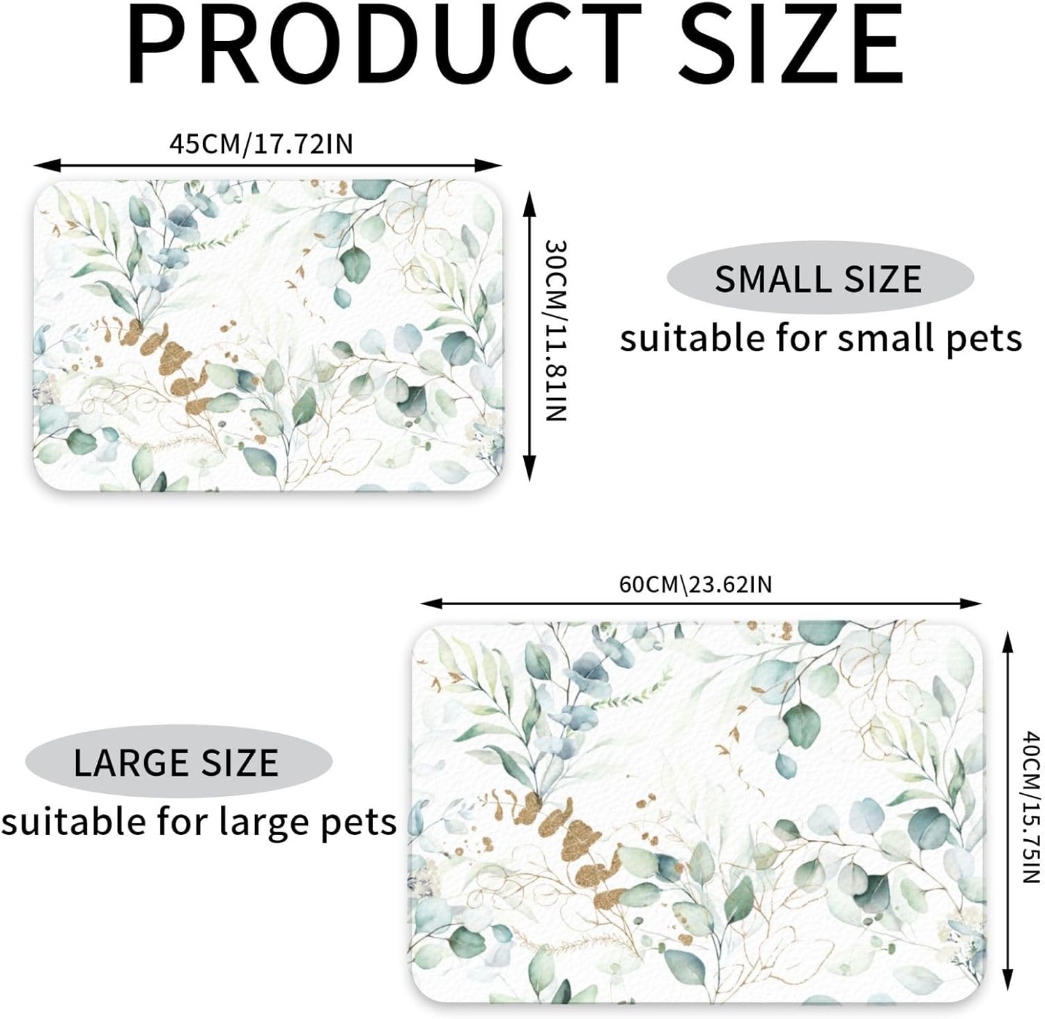 Plants Flowers Dog Food Mat Absorbent Bowl Mats No Stains Quick Dry Waterproof Pet Cat Placemats for Food and Water, 30x45cm