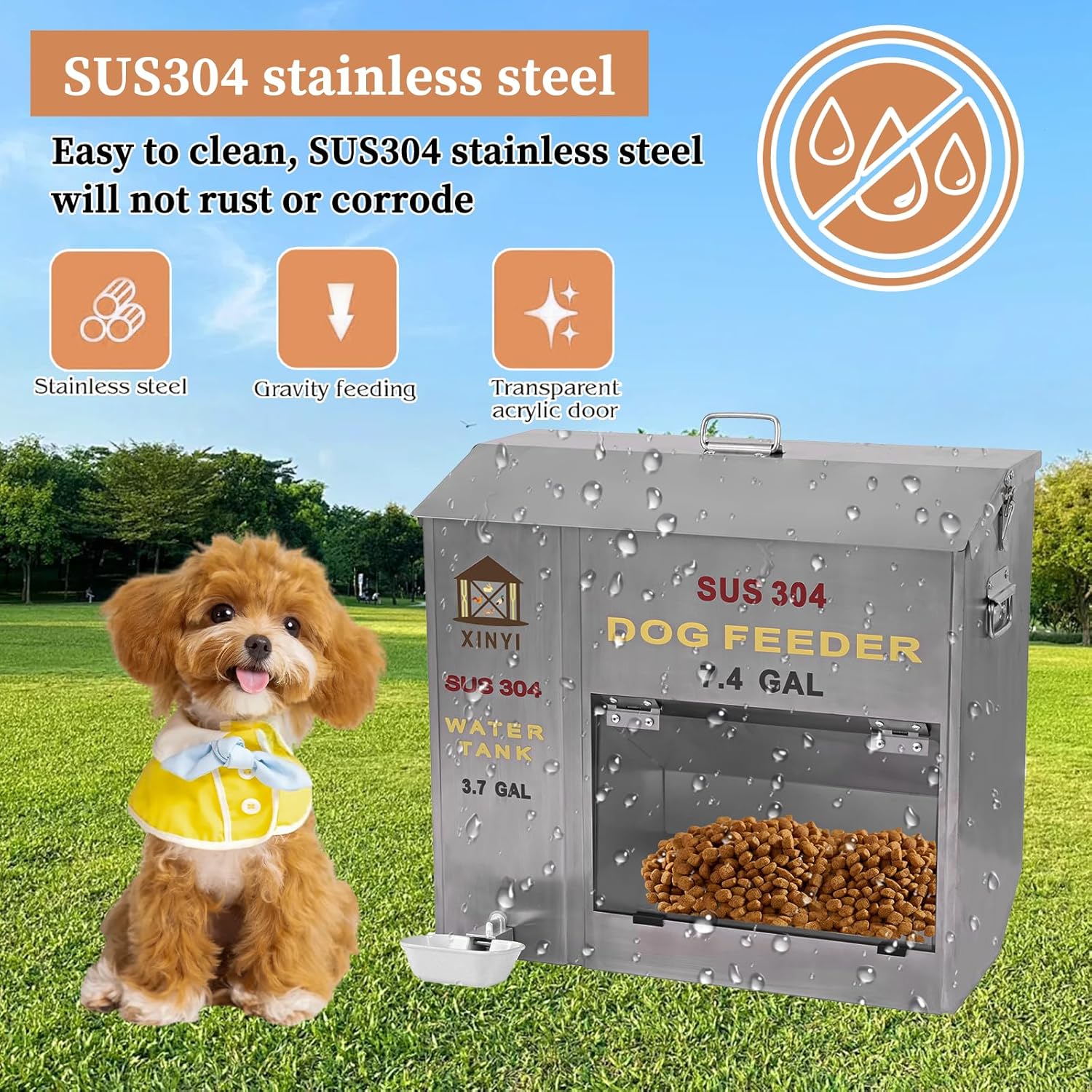 - Worry-free Use:This dog feeder top cover has a slope design, which will not allow water to enter or accumulate when used outdoors. there are metal handles on both sides for easy transportation and changing of installation positions. the stainless steel surface is very easy to clean and will not rust.