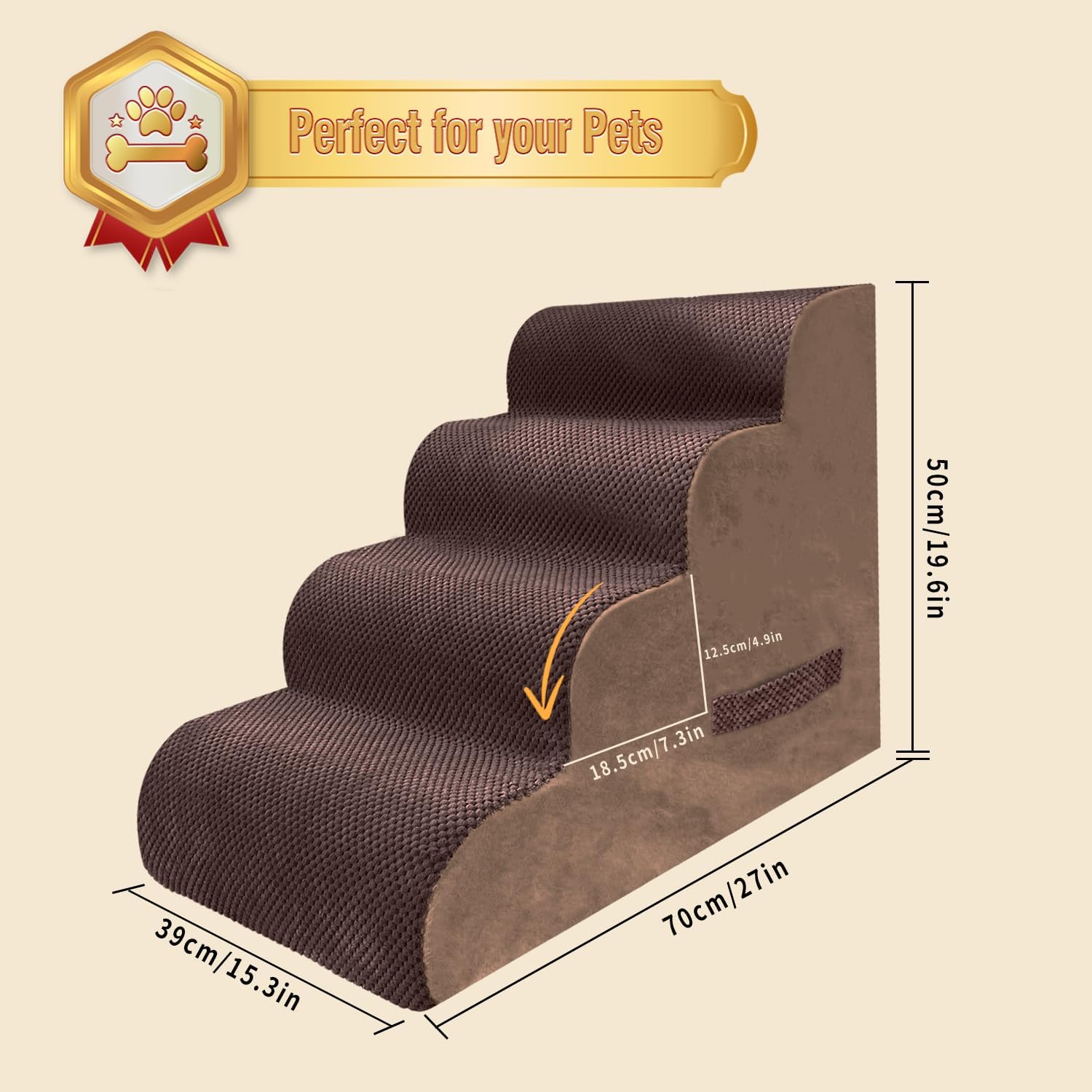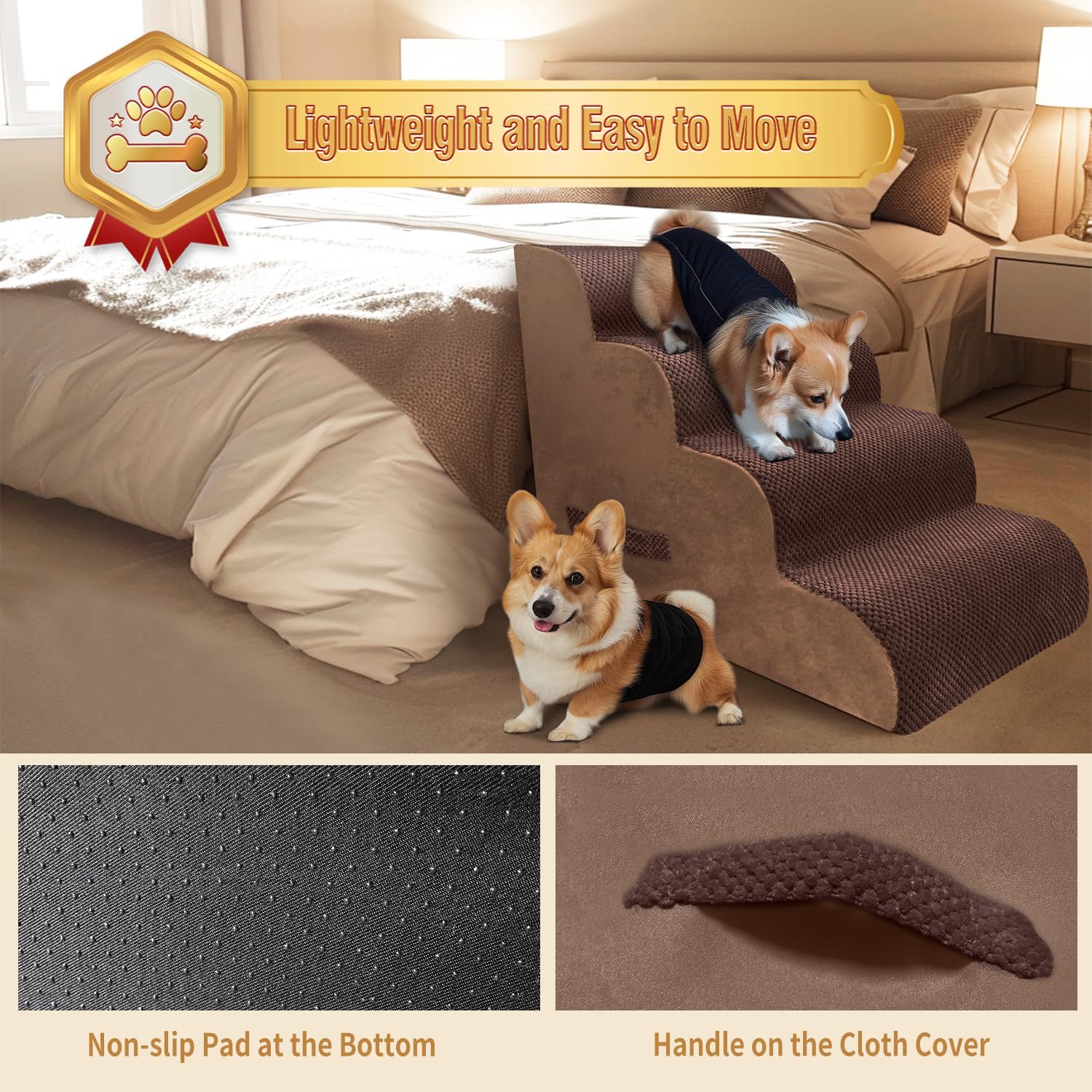 - Easy to Clean and Maintain - The washable cover of our pet stairs is removable and easy to clean, and the zipper design allows for convenient hand washing or machine washing. Please note that the foam core should not be machine washed or dried.
