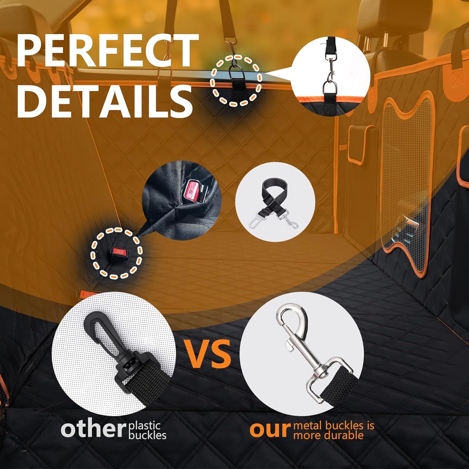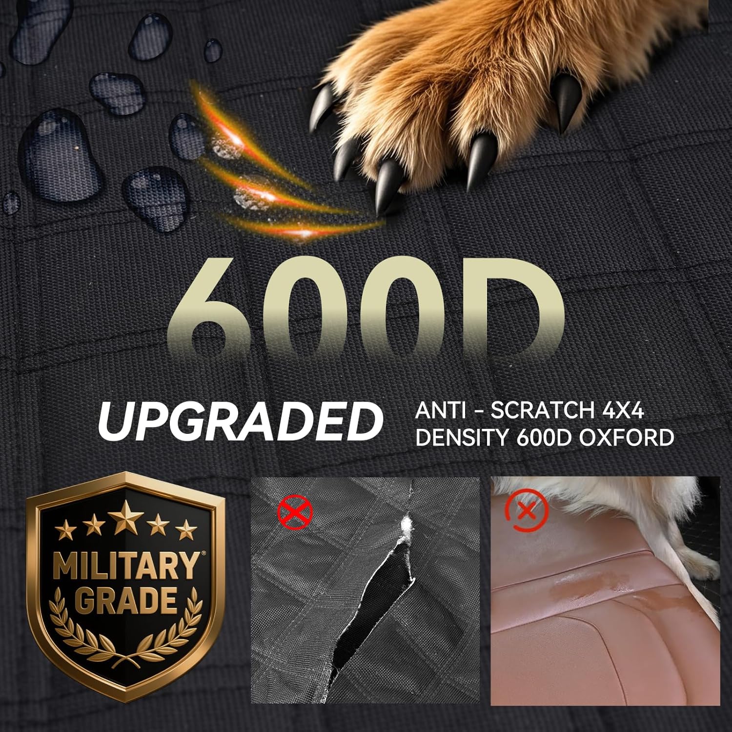 - Waterproof & Anti-Slip Design:Crafted using an advanced heat-pressing process with 7 layers of materials, including 600D Oxford fabric and 210D Oxford fabric, Our back seat cover provides superior waterproof protection. The anti-slip bottom ensures your dog wonât slide off during the ride.