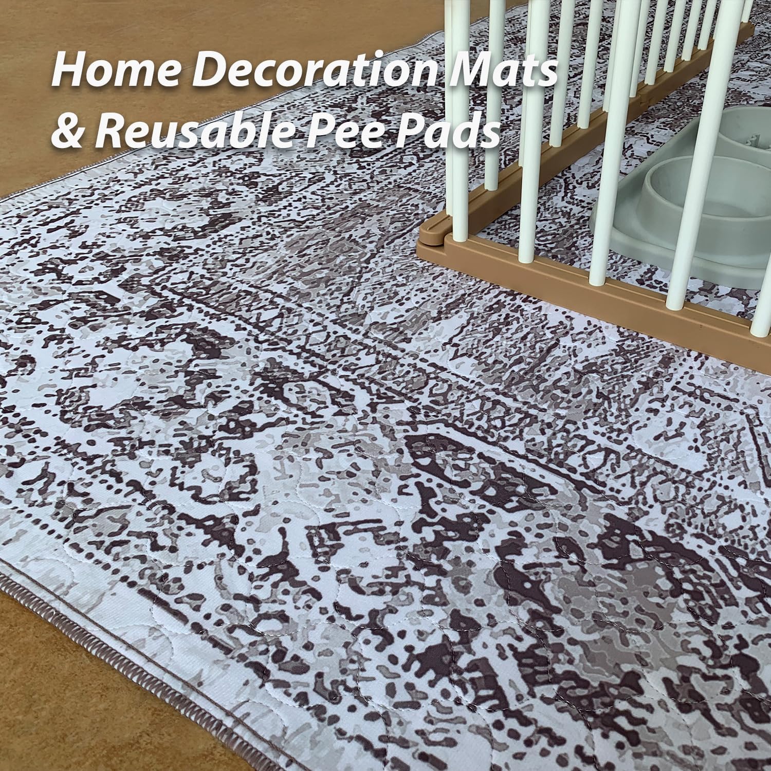 nunubaby 4PACK Washable Pee Pads for Dogs, Stylish, Non-Slip and Leak-Proof Pee Pads. Reusable Potty Pads for Dogs for Crates and Floors.(Brown/Geo, 24" x36")