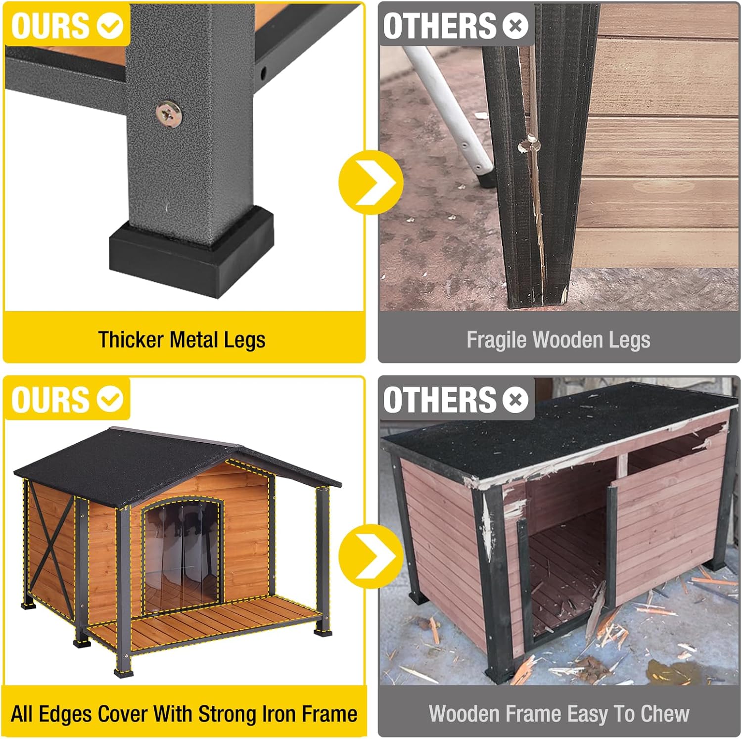 - Sturdy Wood And Metal Structure: Large dog house reinforced with a metal frame and thick solid wood panels for enhanced durability and long-term outdoor use
