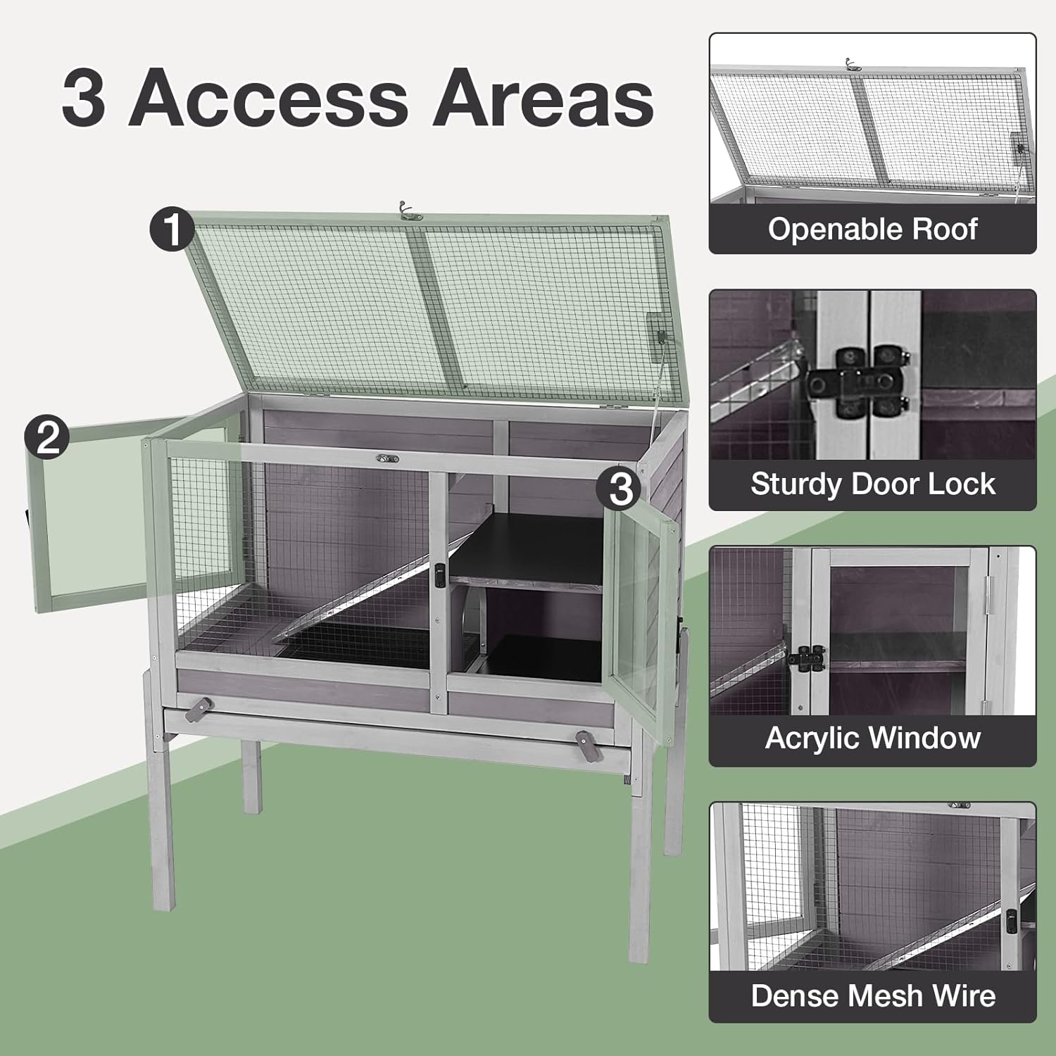 - 2-in-1 Multi-Level Design Distinct sleeping, dining, and bathroom areas plus a spacious upper play area — promoting natural behaviors and active play for small pets