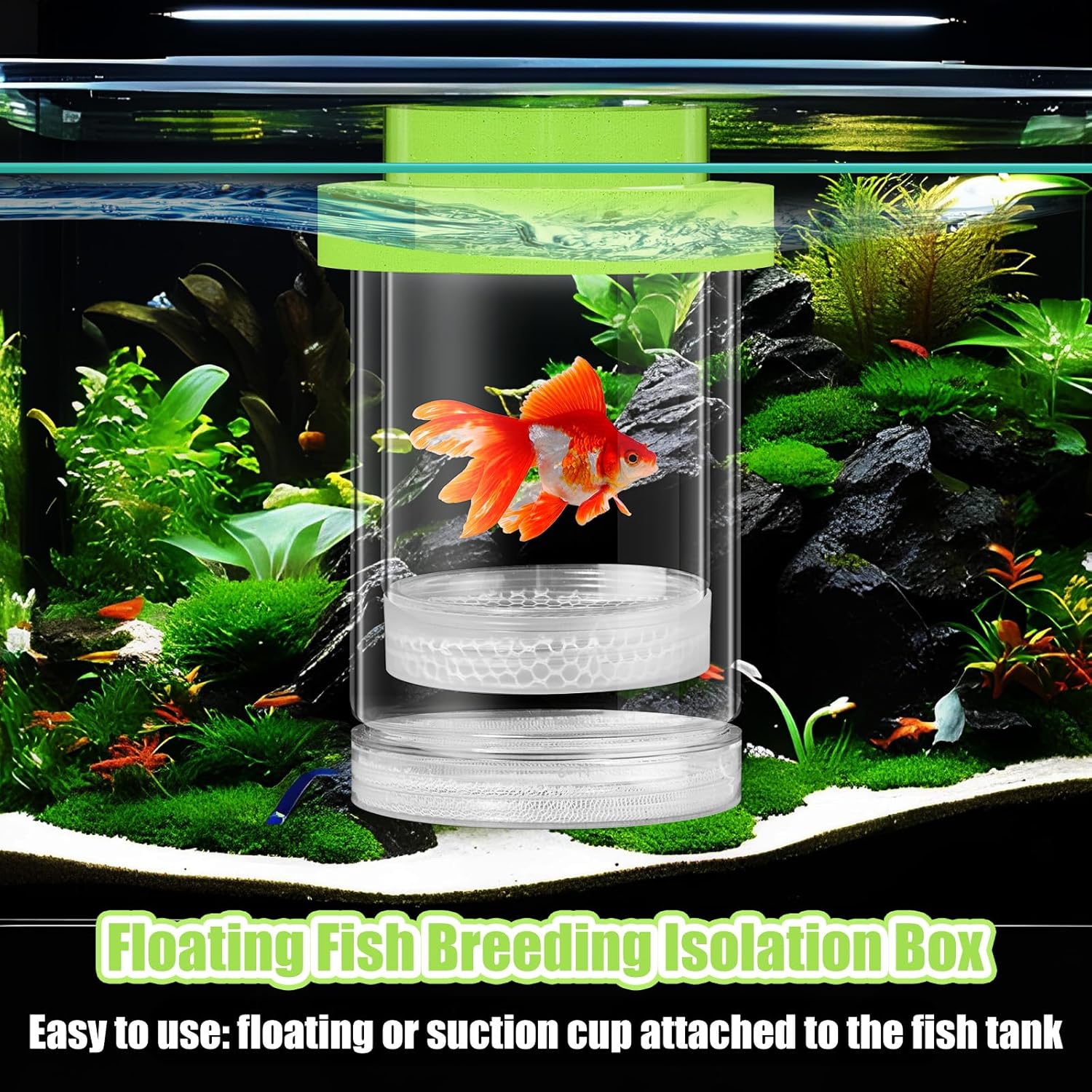 - Easy to Install and Easy to Operate: the suction cup mount (included) allows you to hang this Aquarium breeder box at any height of the fish tank; The box can be easily placed in your aquarium, providing a separate breeding area without any complicated setup