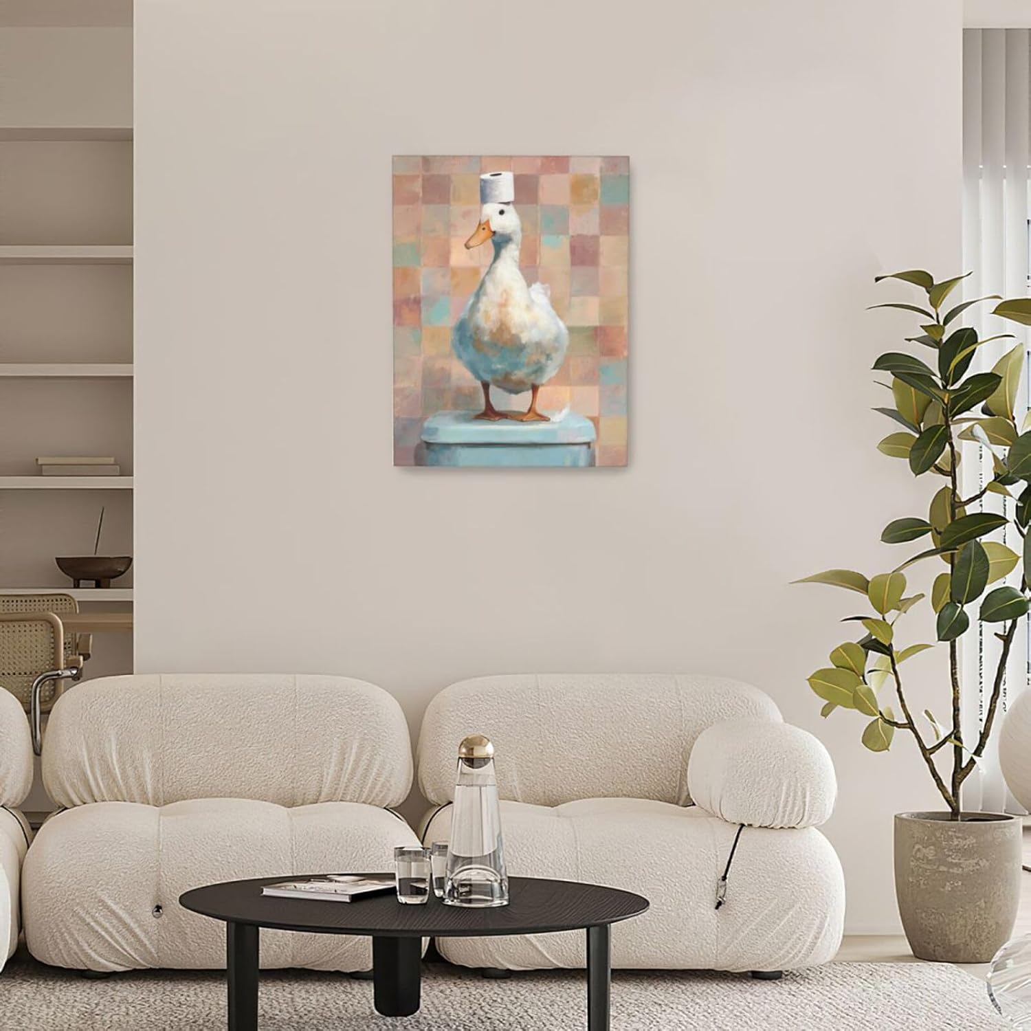 Funny Duck Bathroom Wall Art Cute Duck on Toilet Canvas Wall Decor Funny Quirky Farm Animal Pictures Painting Print Framed Artwork Decorations Gifts for Bathroom 12"x16"