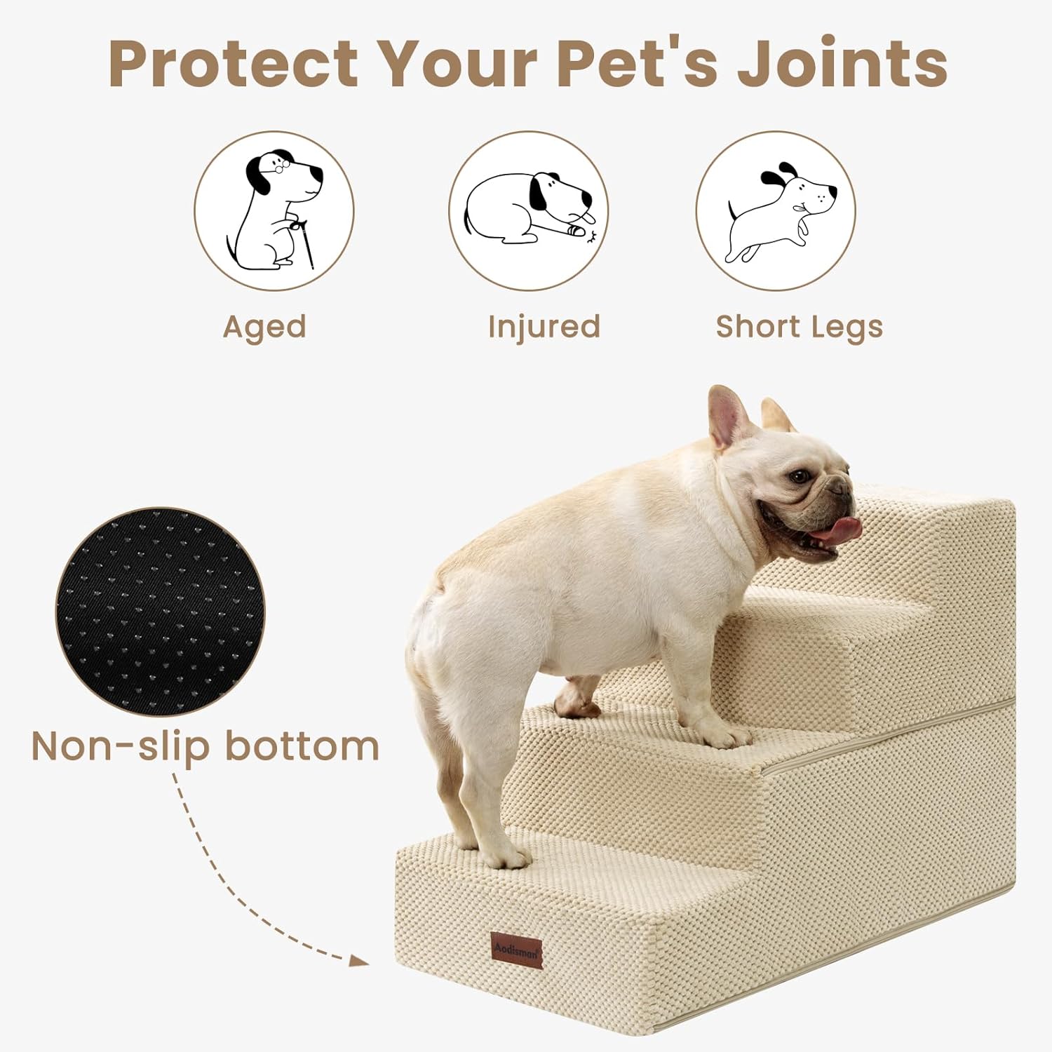 - ANTI SLIP SAFETY DESIGN; bottom with rubber dot non slip surface increases friction; provides stability and prevents pets from slipping or falling while stepping