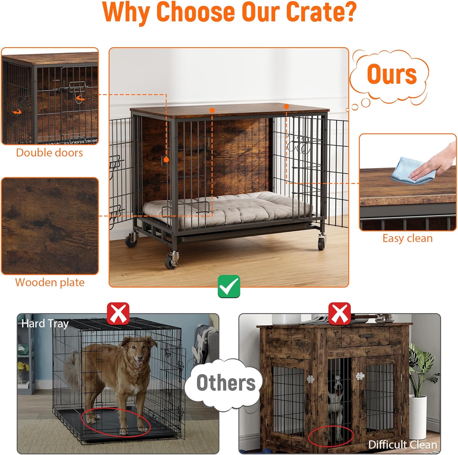 - 【Durable Chew-Resistant Construction】Crafted with premium particle board and reinforced steel, this wooden dog crate withstands the chewing habits of even the most determined pets. The robust metal mesh promotes excellent ventilation, making it a safe indoor dog kennel for both small and medium-sized dogs, ensuring durability and pet safety.