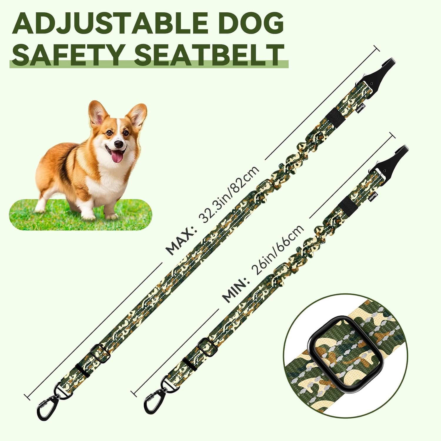 Pawaboo 2Pack Dog Seatbelt for Car, Dog Car Seat Belt Bungee, Dogs Tether with Buckle & Hook Latch, Adjustable Reflective Dogs Cars Harness Leash with 360° Lockable Buckle, Army Green Camouflage