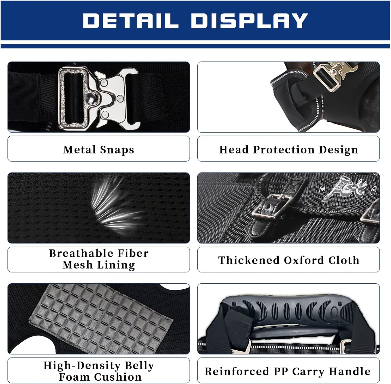 - 【Spine-Friendly Horizontal Design】The dog backpack carrier’s spine-friendly horizontal design features added head protection and a thickened abdominal foam cushion. This ensures optimal weight distribution, minimizes spinal stress, and delivers maximum comfort and support – especially vital for large breed dogs and senior pets.