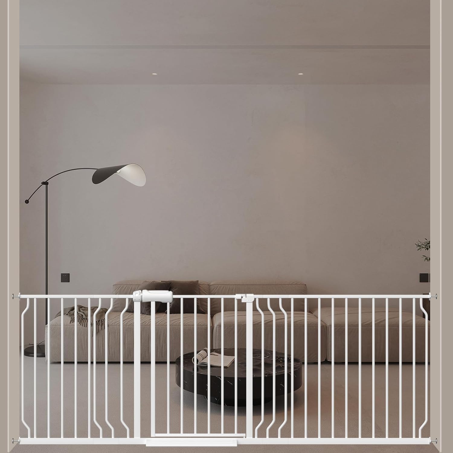 - 【Safe for Baby】Your curious crawlers will be "blocked" by the safety extra wide baby gate because we design the double-lock safety release which makes it difficult for toddlers to open the gate ,but adults can operate with one hand and pass quickly.