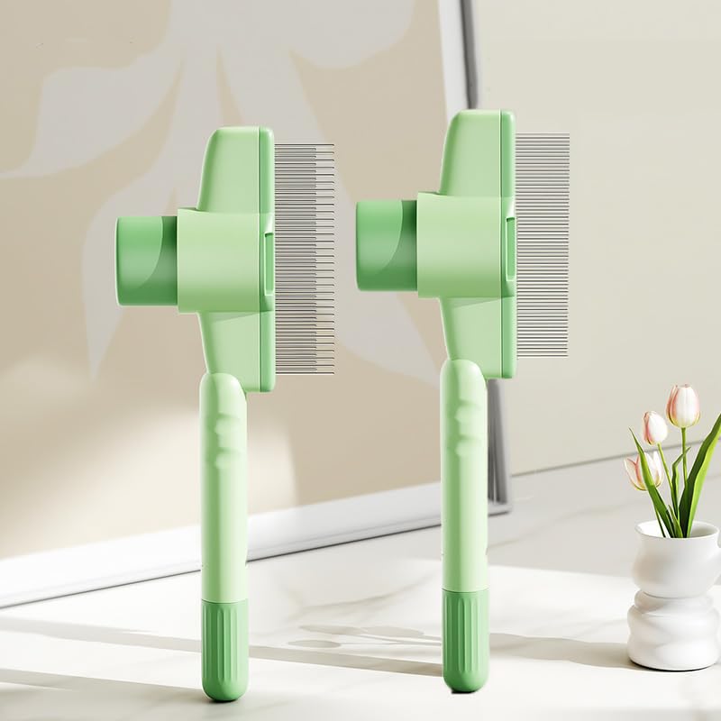 Cat Comb Dog Comb Pet Hair Removal Tool Flea for Cats and Dog Lice Cat Brush with Release Button Self-Cleaning with Long & Short Stainless Steel Metal Teeth for Shedding