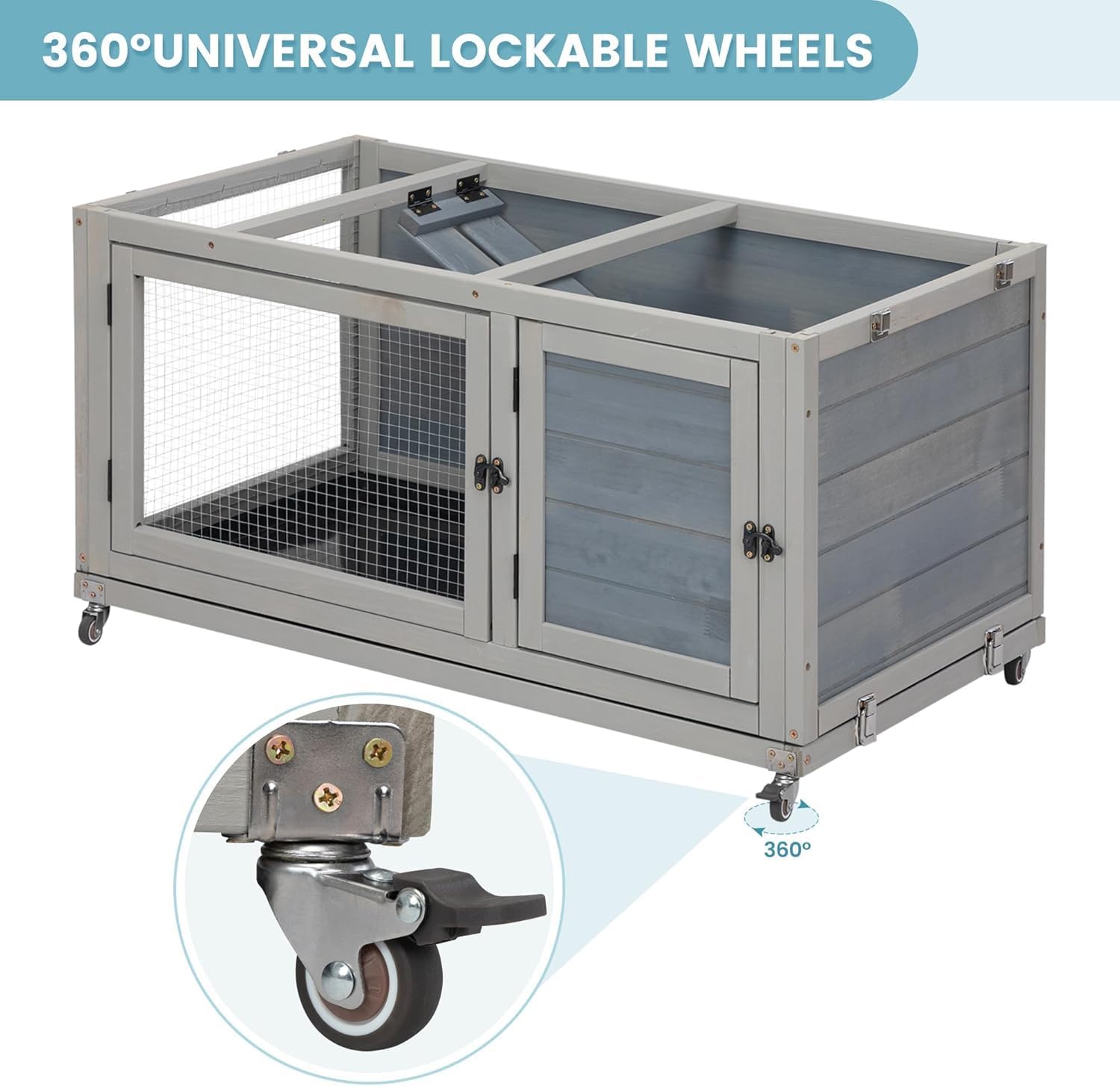 - 【Upgraded 4 Wheels】: Coming with 4 robust and dependable metal wheels, this small animal cage can be easily pushed for both indoor cleaning and outdoor sunbathing without any effort. Compared to ordinary one, this rabbit cage has 2 wheels with brakes, ensuring the stability.