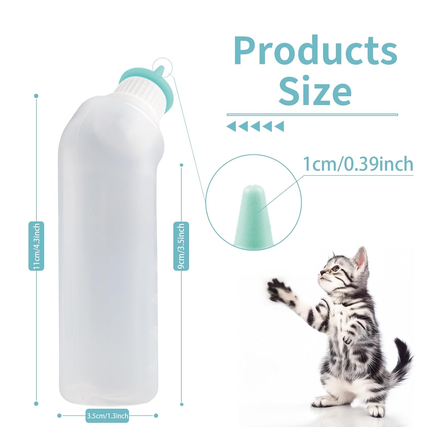 - 【Specially Designed for Newborn Pets】: 5pcs pet nursing bottle with mini nipple ,1pcs measure cup. The kitten bottle feeding is designed for newborn kittens, puppy and other small animals, taking into account the sucking habits and oral structure of the newborn pet to ensure the feeding process is safe and comfortable.