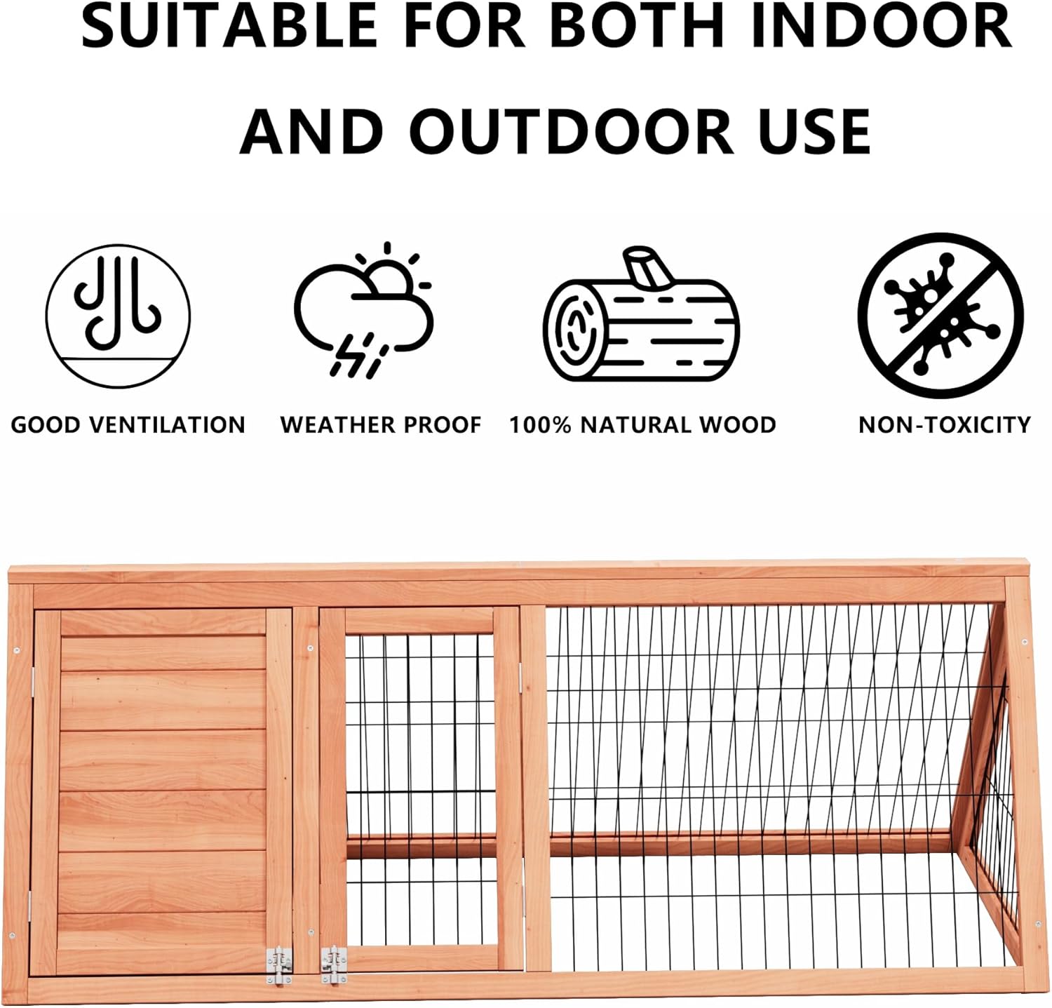 - Crafted from non-toxic, kiln-dried wood with water-based stain, this outdoor chicken coop provides a chew-resistant shelter. Steel mesh can protect from predators while ensuring safe indoor-outdoor transitions