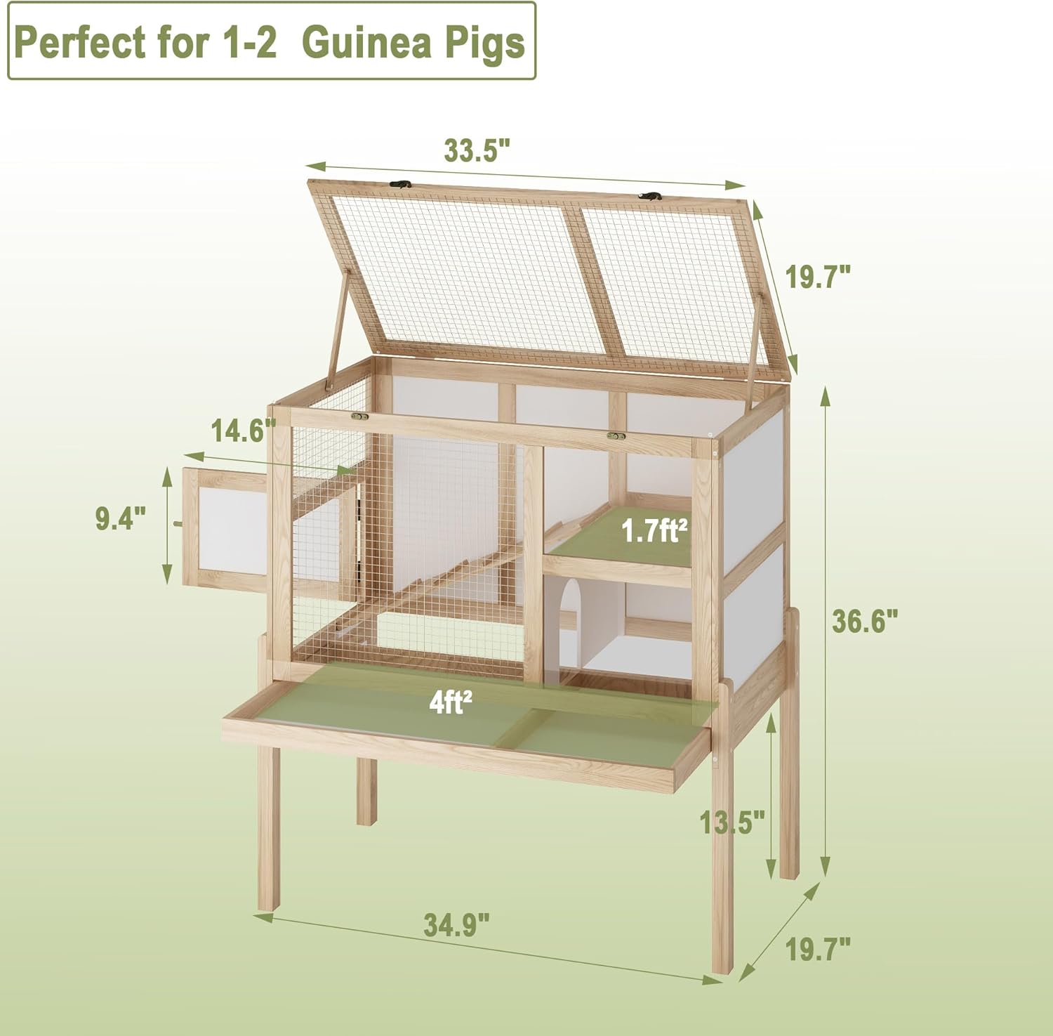 - Large Space: This guinea pig cage measures 34.9 X 19.7 X 36.6 inches and is perfect for most small animals, such as guinea pigs, rabbits, chinchillas, hedgehogs, hamsters, ferrets, quails, gerbils, sugar gliders, and others.