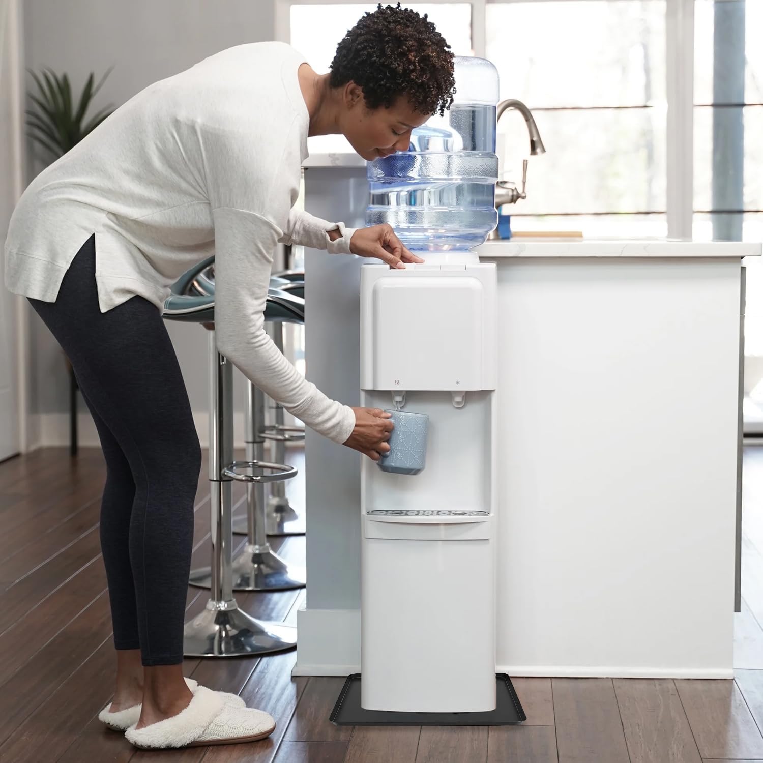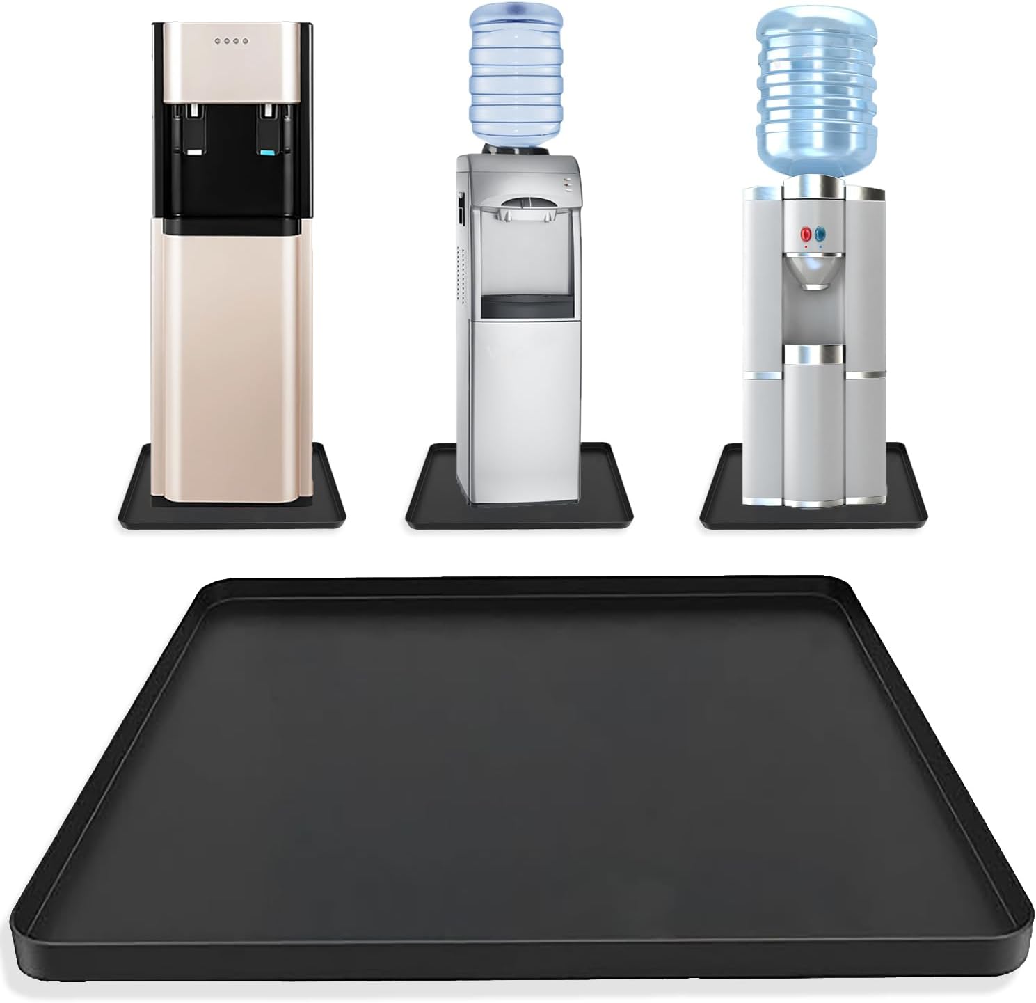 - 【Perfect floor protection】The water dispenser mat is made of high-quality waterproof silicone, the size is 24 inches x 16 inchesx 0.8-inch raised design can 100% prevent water or liquid from overflowing from the water dispenser, Helps protect your floors from water leaks or other stains .