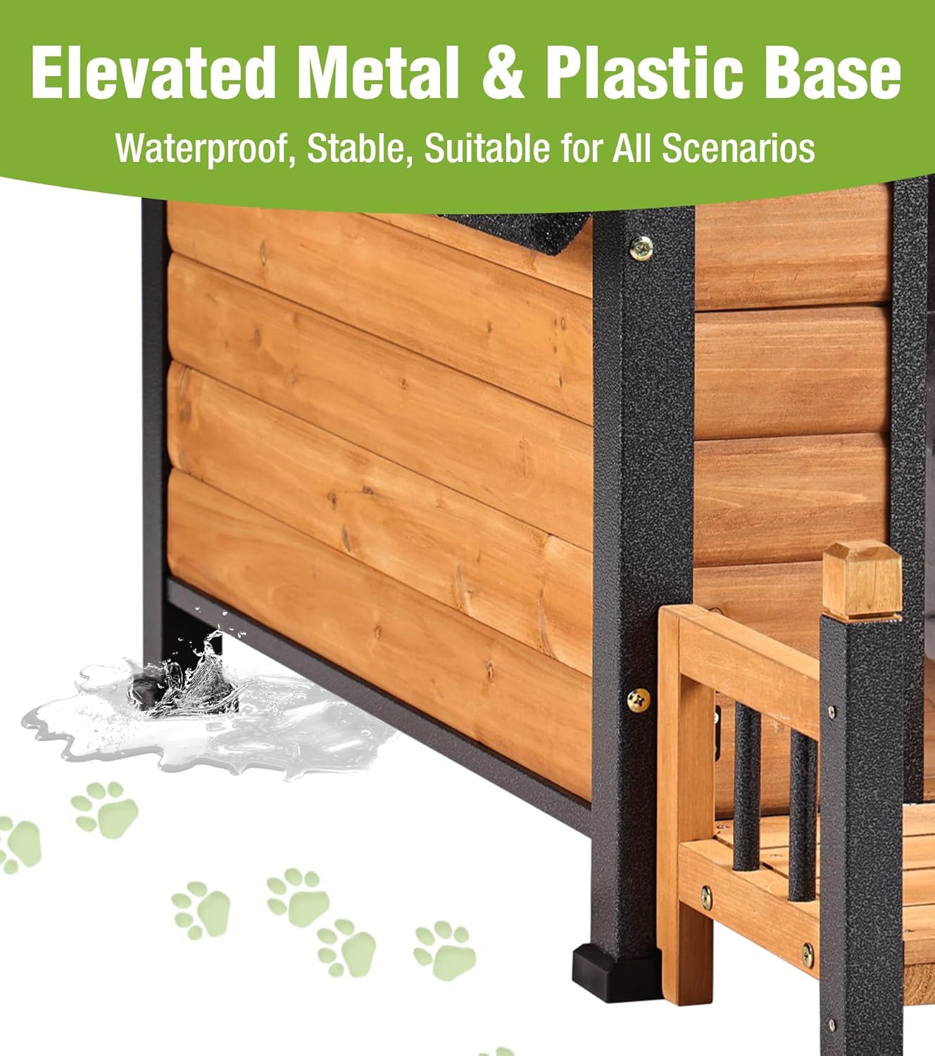 - ππππππππ πππππ & πππππππ ππππ π ππ πππππππππ - This large dog house features an elevated metal-plastic base for waterproofing and stability. The raised design keeps the main area dry/clean, fitting all scenariosβrainy days to snowy winters
