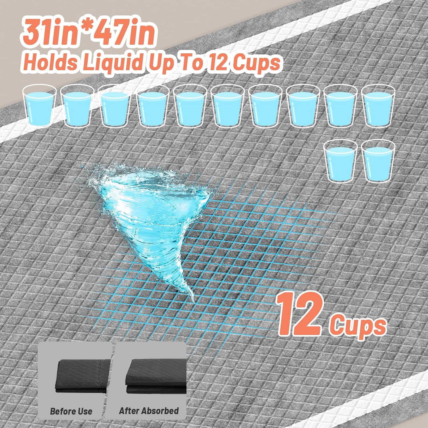- Activated Carbon for Odor Control: To keep fresh air in your home, we add activated carbon to eliminate odors, It is a natural material known for its odor-absorbing and trapping abilities. When you do pet training or take care incontinence puppy, you won't smell unpleasant odor any more