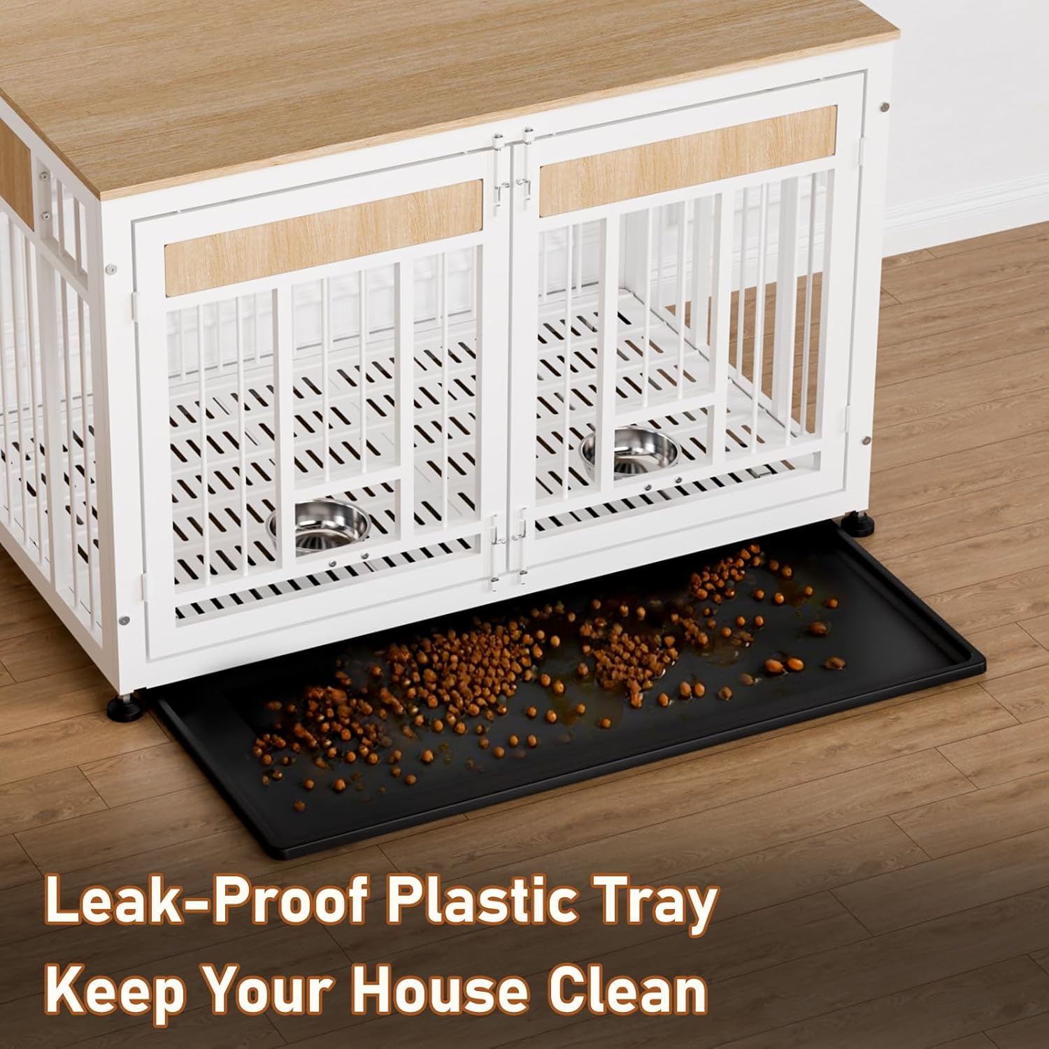 - Easy-Clean Removable Tray: Our Dog crate includes a slide-out plastic tray for quick cleanup of pet hair, spills, or accidents. Simply pull, wash, and replace.
