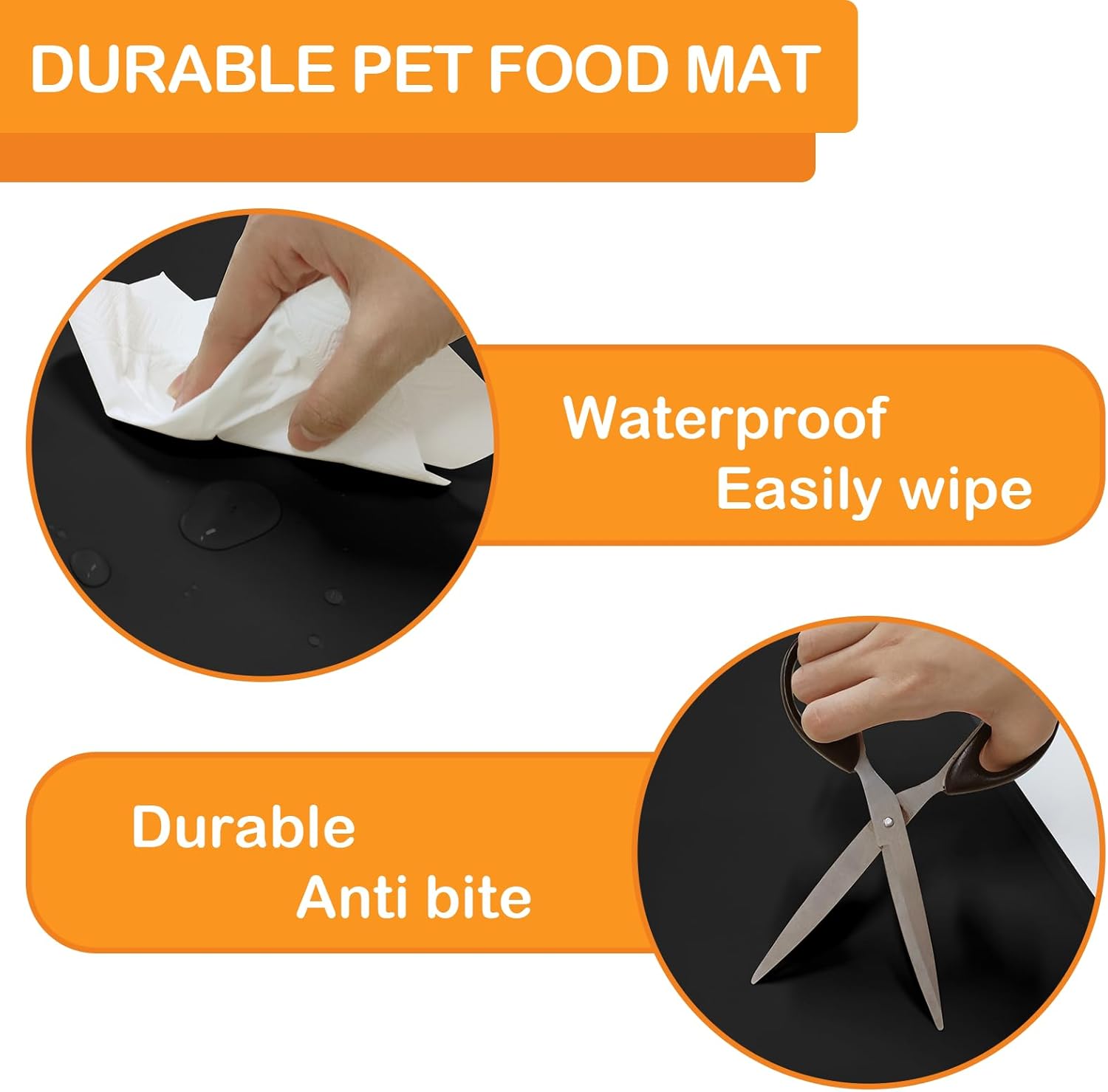 - 【GREAT FUN】Biggest placemats for pets, can let all your pets have meal together, no need wait or scramble for food. What a happy meal time! Besides, also can protect floor from gravity water dispensers and elevated feeders.