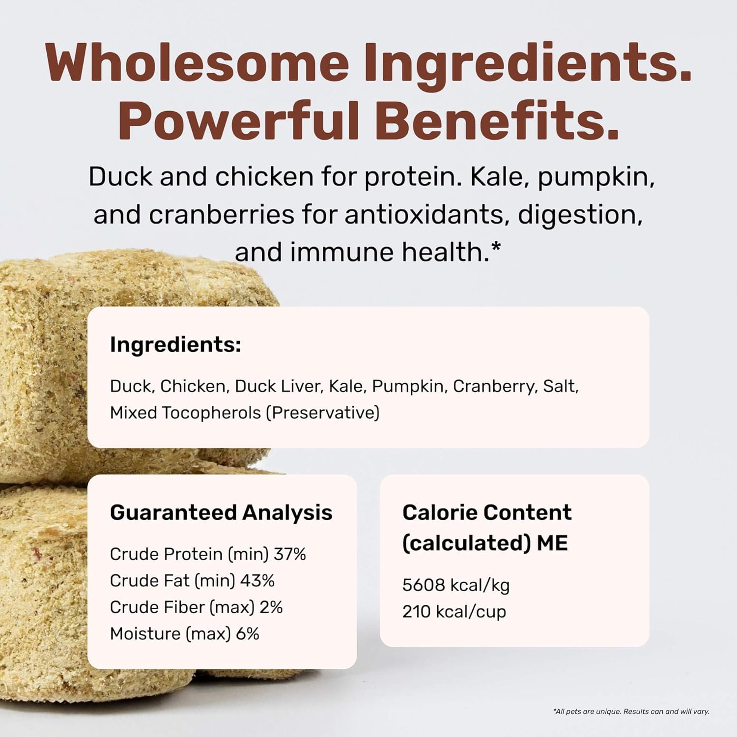 - Nutrient-Rich Freeze-Dried Formula: Made with protein-packed duck, chicken and chicken liver, plus nutrient-dense fruits and vegetables — all freeze-dried raw to help preserve flavor and nutrition in every bite.