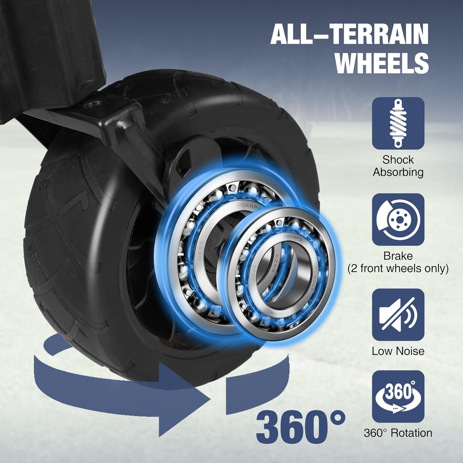 - Flexible Design for Outdoor: Our upgraded dog wagon cart is equipped with 4 all-terrain wheels with bearings, which can smoothly tow and easily transport on multiple ground. 2 rotating front wheels with brakes ensure parking at all times while playing with pets. Adjustable handle with locking system can hold it in place.