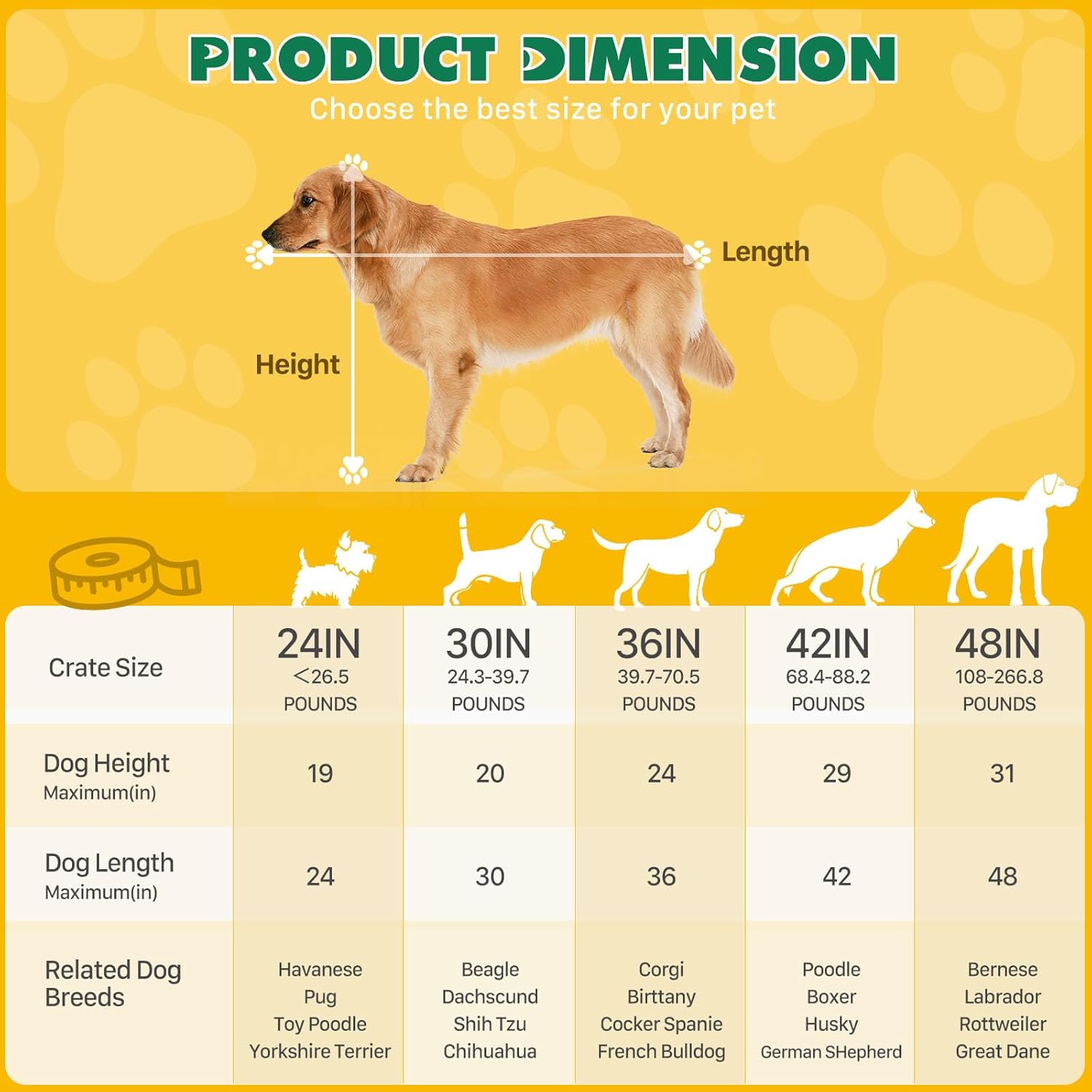 - 【DOUBLE-DOOR DESIGN】 Two-door access provides front and side door access for proper ventilation and interaction with you. Large door opening and low threshold, allows your pet easily enter and exit the crate. Each door comes with a heavy-duty sliding bolt latch to securely lock it in place to keep your pet safe.