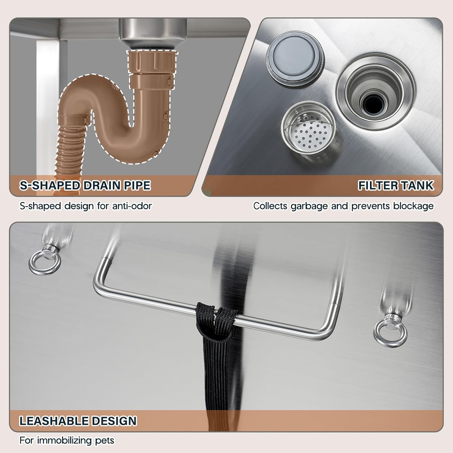 - Durable and Long-Lasting: This Dog Wash Tub is built from premium 304 stainless steel for exceptional durability, with an easy-to-clean surface for quick removal of bath residue.
