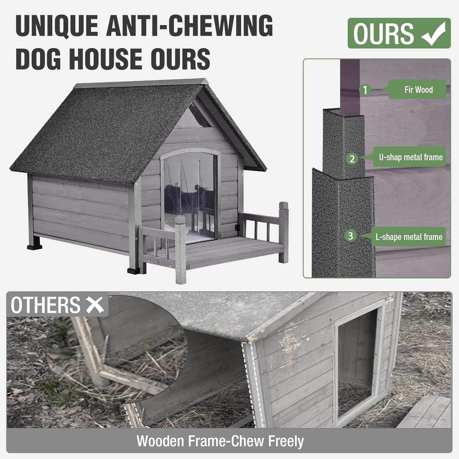 - Durable and Sturdy Structure: Our anti-bite dog house is made of high-quality fir wood, featuring a robust frame that can withstand various weather conditions. Whether it's rain, snow, or hail, this dog house will provide a safe haven for your beloved pet.
