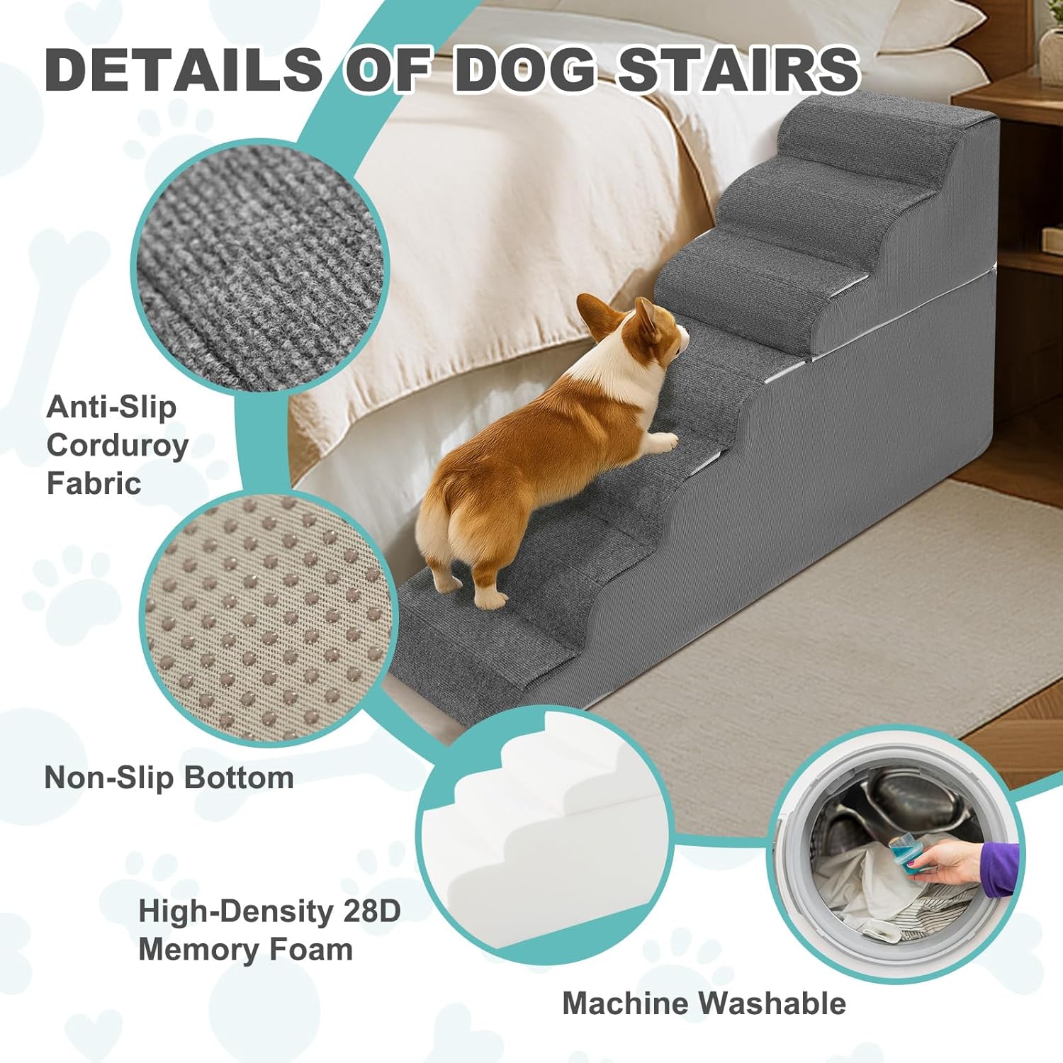 7-Step Dog Stairs for High Bed - 29.5" Adjustable Dog Ramps for Couch, Non-Slip Sturdy Pet Steps for Small Dogs, Washable Cover, Removable Modular Design, Dual 11.8” & 17.7” Steps for Custom Height