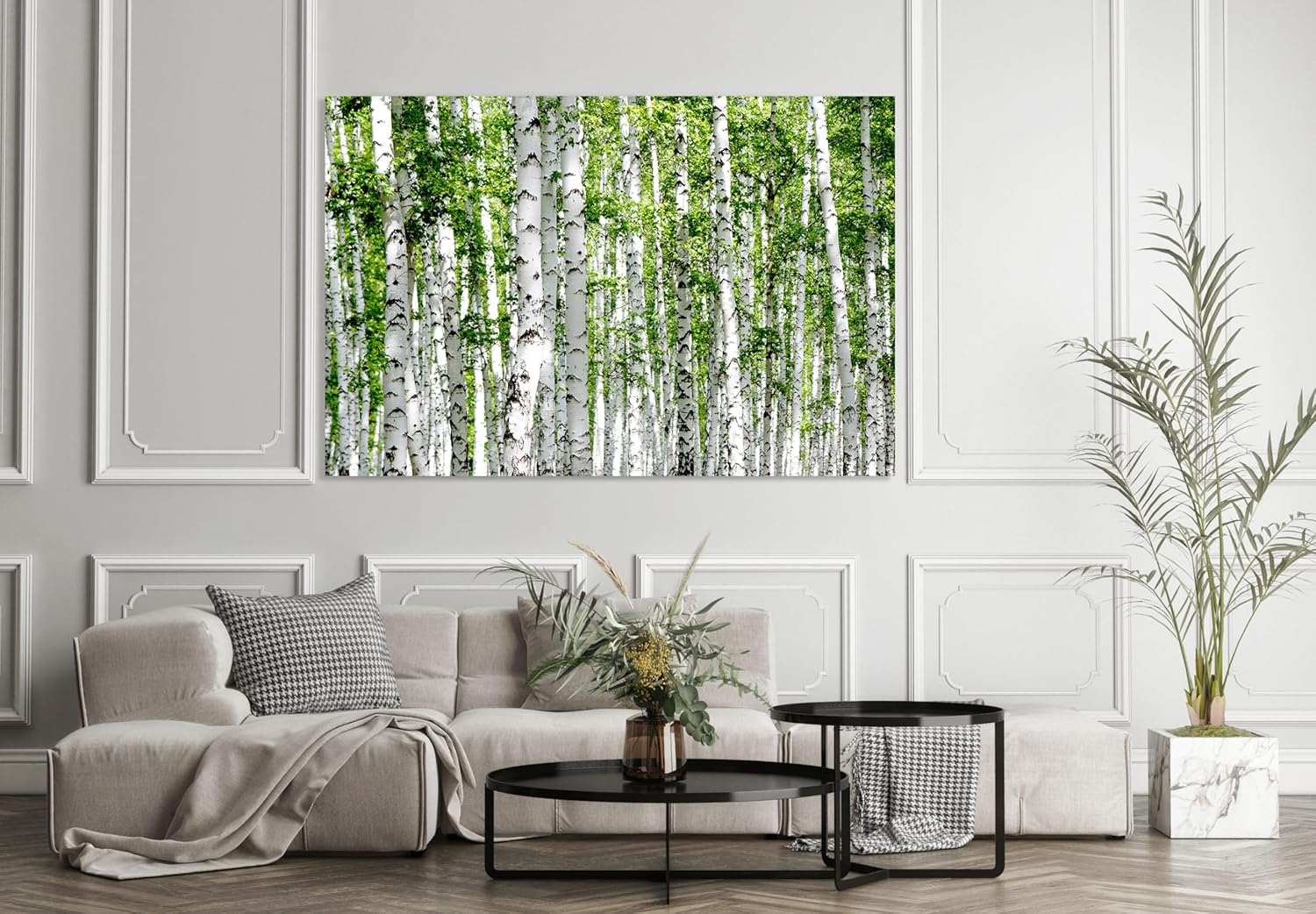 Nature Wall Art Prints - Ocean Forest Mountain Lake Canvas Landscapes - Small to Extra Large Living Room Bedroom Kitchen Bathroom Décor (Green Brich Trees, 24L" x 36W")