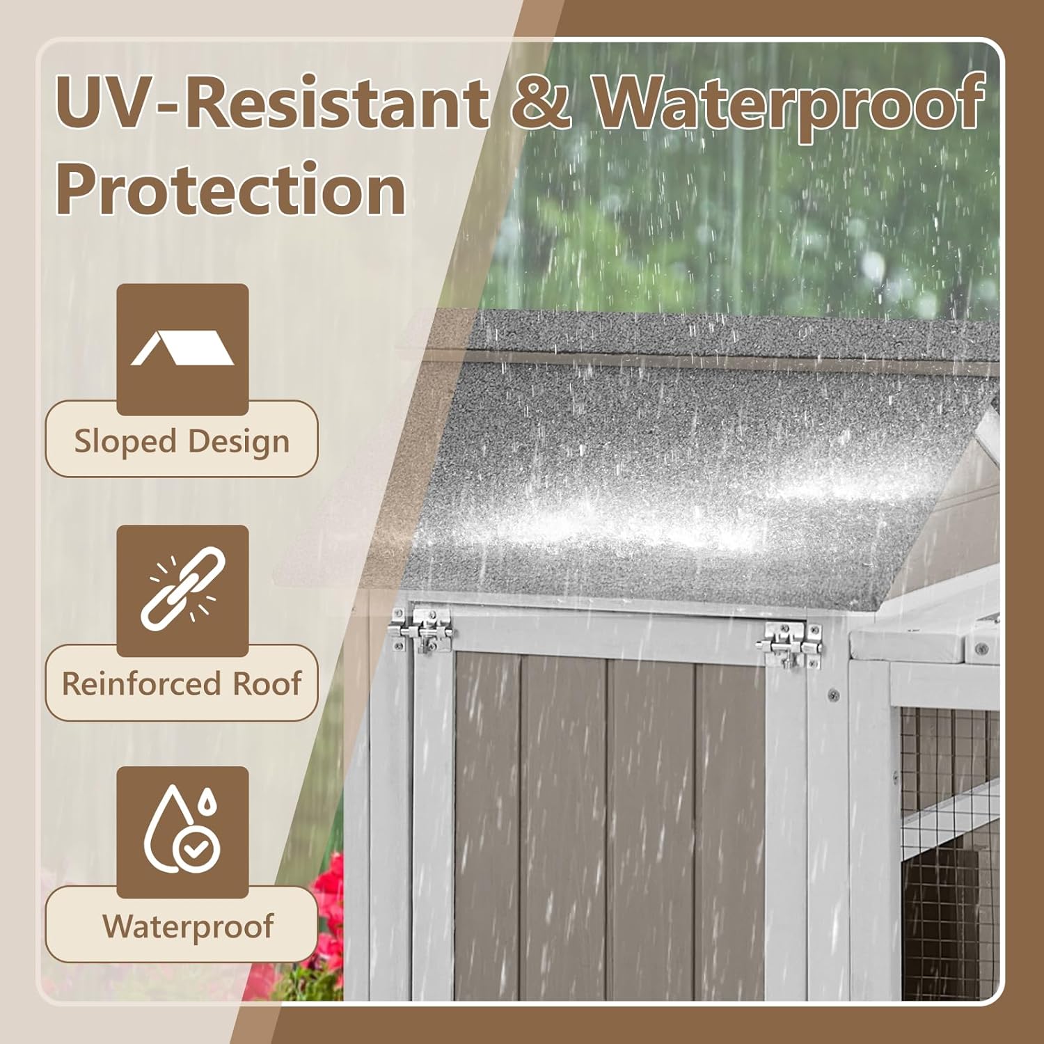 76''L Rabbit Hutch Outdoor Indoor with Wheels, Wooden 2 Story Bunny House Rabbit Cage with Run, Waterproof Roof, Pull Out Tray, Guinea Pig Cage Chicken Coop for Small to Medium Pets