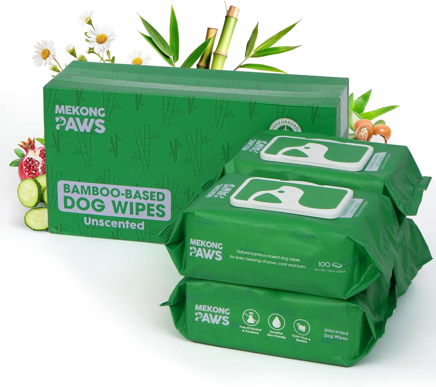 Pet Grooming Wipes - Unscented - Natural & Organic Bamboo Base - Freshening Wipes for Dog & Cat - Skin-Friendly & Gentle - Thick & Durable for Paws, Coat & Bum Cleansing - 400 Count
